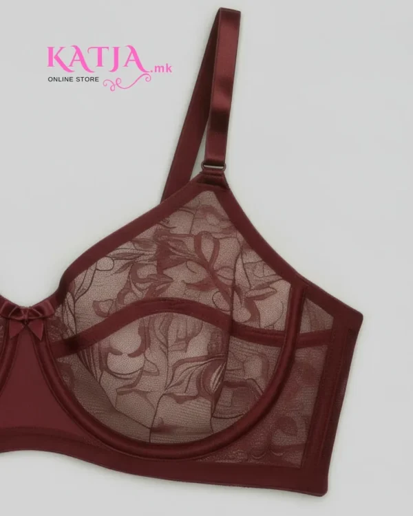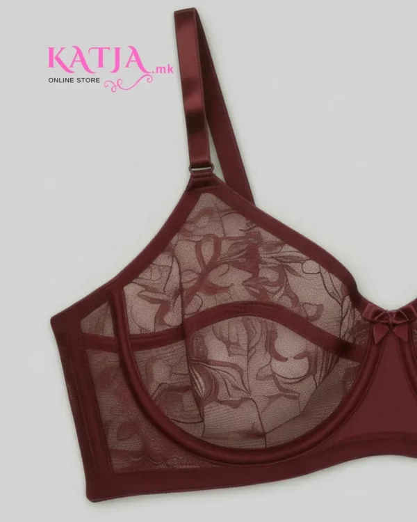 • Градникот е без корпа со жица која обезбедува поддршка на градите. Фина чипка која го покрива целиот преден дел, создавајќи женствен изглед